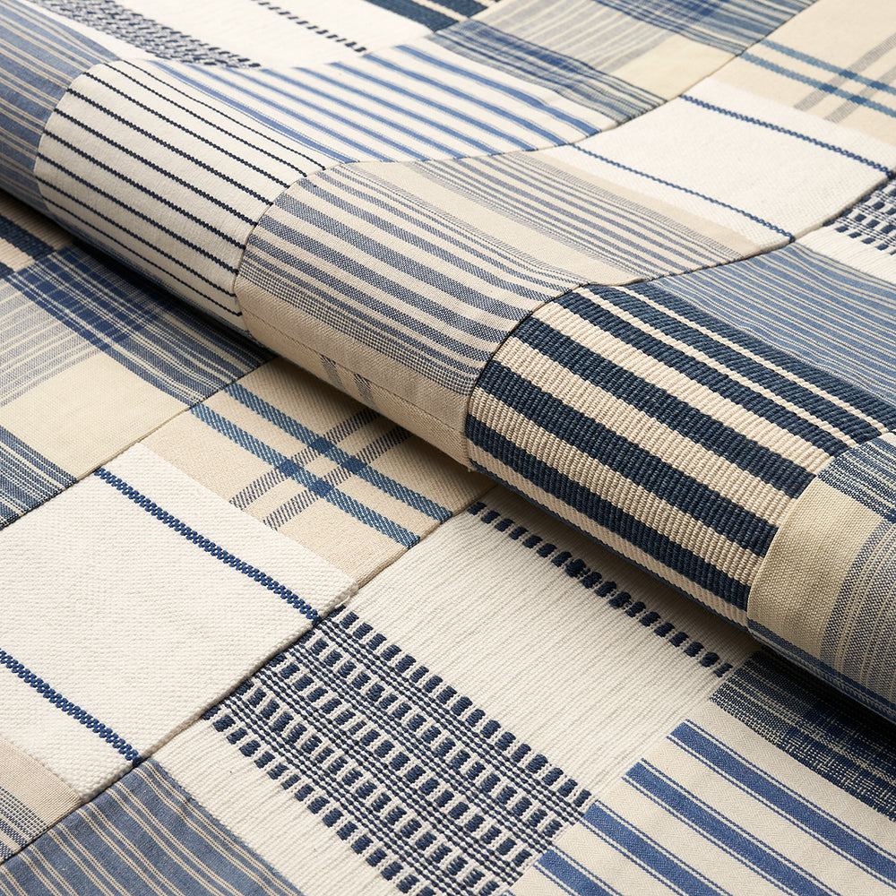 Style meets sustainability in indigo-colored Carlisle Patchwork, a clever, environmentally conscious design made of upcycled remnants of beloved Schumacher fabrics. Perfect for upholstery and slipcovers, this fun random combination of stripes is also suitable for pillows and window treatments. -