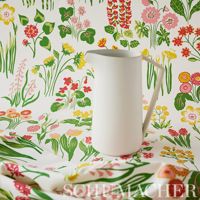 This sweet, allover floral with a happy 1960s vibe is like the embodiment of bright spring day: colorful, sunny, and euphoric. Also available as a wallcovering. -