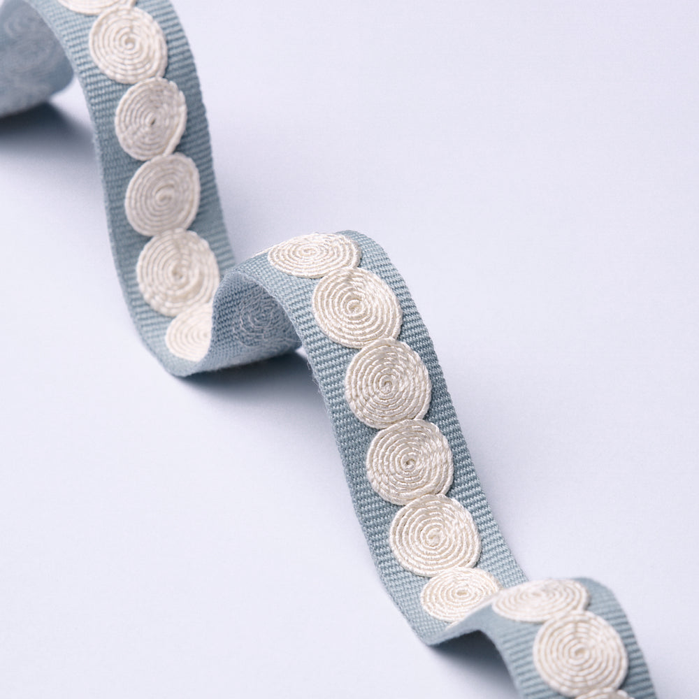A handsome corded embroidery design on a cotton faille ground, Castille Tape Narrow makes a snazzy, graphic statement on upholstery, pillows or drapery panels.
