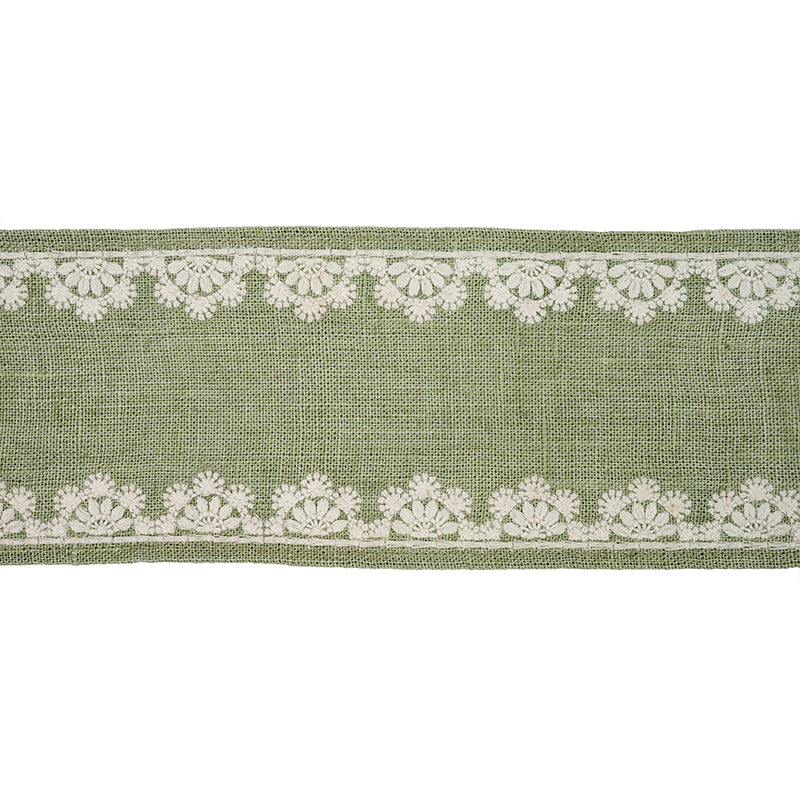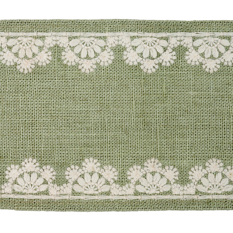 A rustic linen ground keeps intricate embroidered lacework from getting too precious on this gorgeously feminine accessory with a Swedish vibe. -