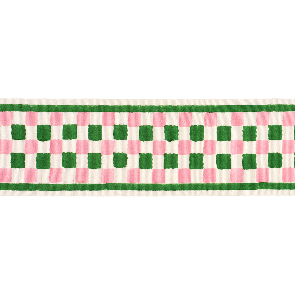 chequer hand block trim | green