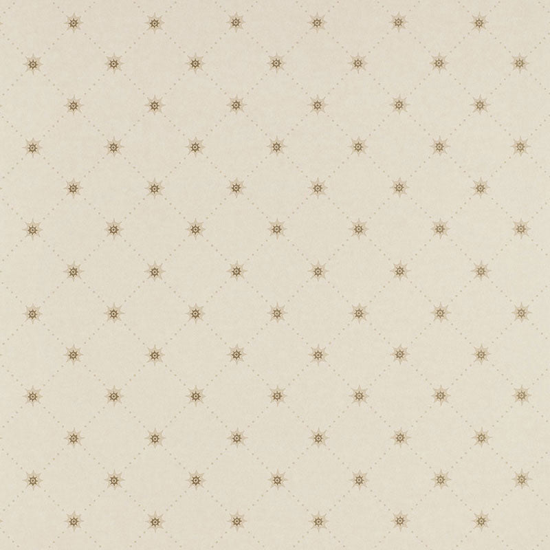This classic star and lattice pattern on a dappled ground has a soft, hand-printed look. -