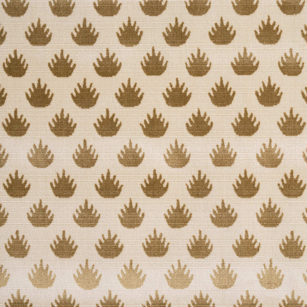 A classic motif with a modern attitude, Coronation Velvet in camel is a regal small-scale design that traverses decorating styles. This sumptuous fabric, with its plush, silky pile, plays beautifully with other patterns and works perfectly for furniture or pillows. -