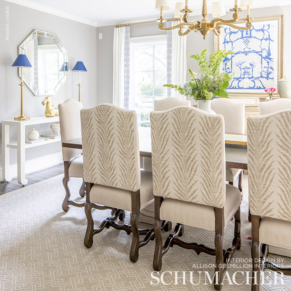 Is it animal, vegetal or a little of both? A stripe that dares to be different, this striking woven upholstery weight fabric evokes feathery fern fronds and sexy animal prints. -