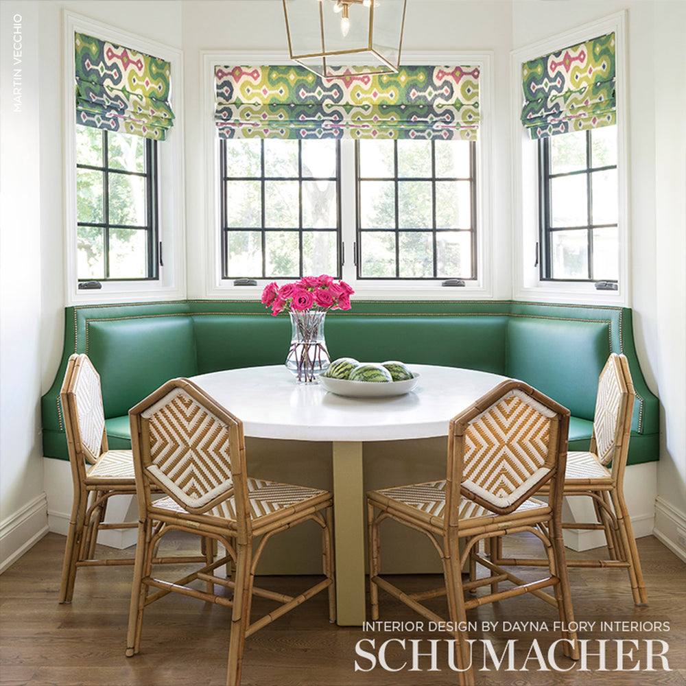 A warp-printing method is used to create an authentic ikat with a modern stripe. Subtle variations are part of its inherent natural beauty. Also available as a wallcovering. -