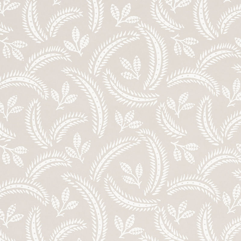 Inspired by a hand-blocked French paper design from the 1700s, this softly graphic botanical combines leaves and fronds in a multi-directional screen-printed repeat with a quiet presence.