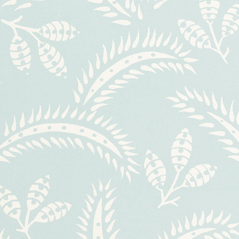 Inspired by a hand-blocked French paper design from the 1700s, this softly graphic botanical combines leaves and fronds in a multi-directional screen-printed repeat with a quiet presence. -