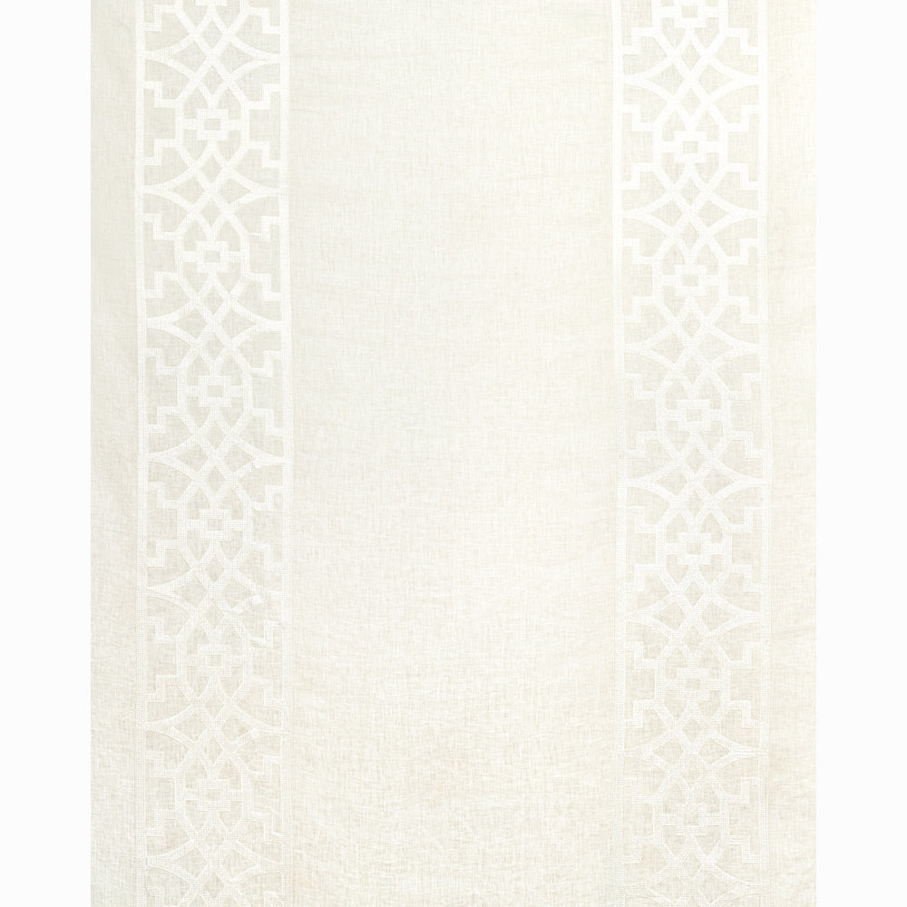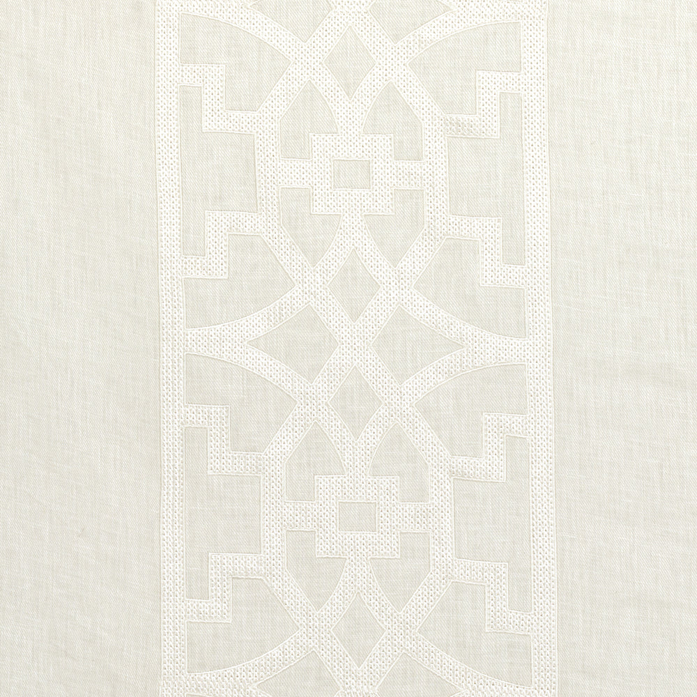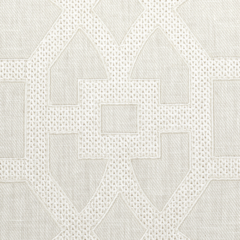 Traditional chinoiserie fretwork inspired this embroidered linen stripe. Subtle variations are part of its inherent natural beauty. -