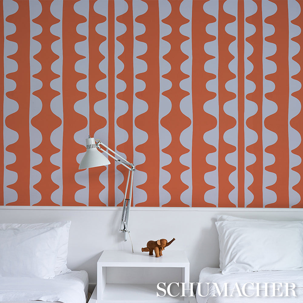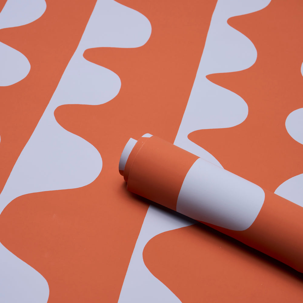 Hadiya Williams used markers to draw the original artwork for Drift, an evocative undulating pattern with a unique stripe effect and interesting interplay of positive and negative. Screen-printed by hand, this modern medium-scale wallpaper brings a striking graphic element to any room. Also available as a fabric. -