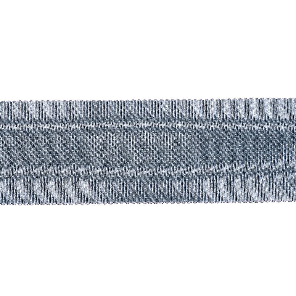 A lustrous ribbed texture and watery moiré effect combine in Duchess Tape in ciel for an exquisite trim with an opulent dimensional look. It’s an elegant finishing touch and the perfect way to elevate upholstery, pillows and window treatments.