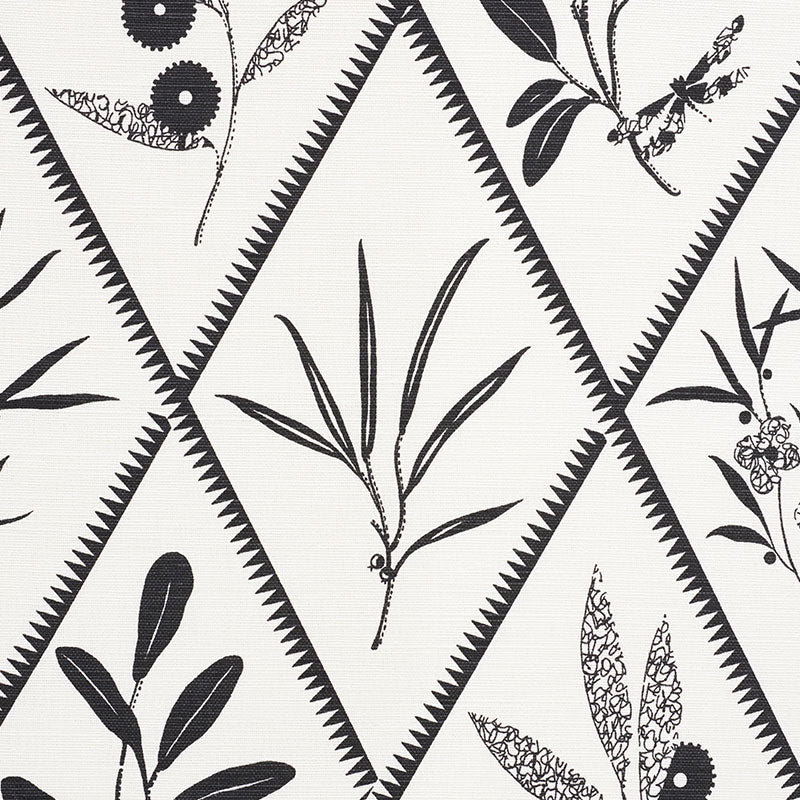 Stylized botanical motifs give this trellis design a fresh look. Also available as a wallcovering. -