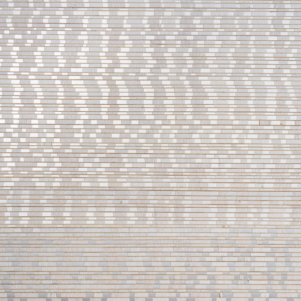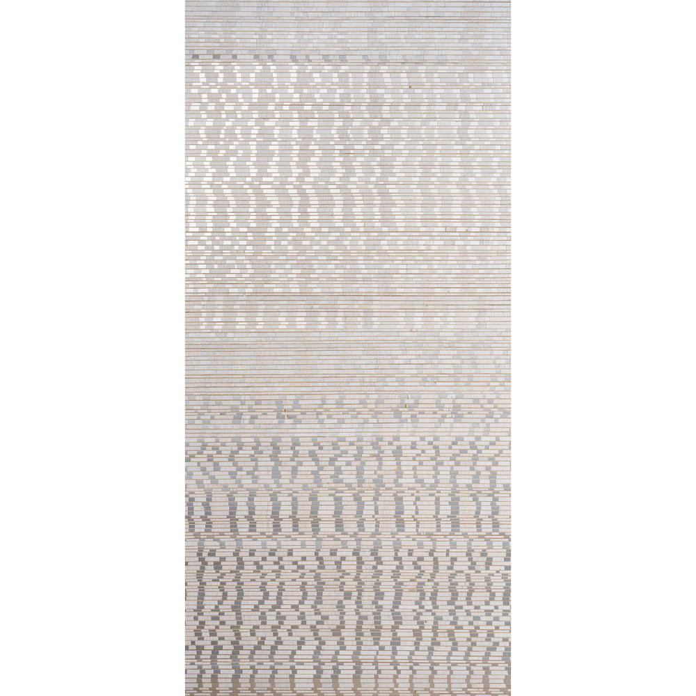 Etti Waterlily is a sophisticated design that derives its extraordinary beauty from natural materials and painstaking craftsmanship. Made of waterlily, grass, and metallic paper, this wallpaper is assembled and painted by hand, creating an irregular mosaic-like composition with subtle tonal variations. Use it on a long expanse of wall for a sublime effect or in a small space, such as behind a bookshelf or on an accent wall, for a luminous, textural surprise.