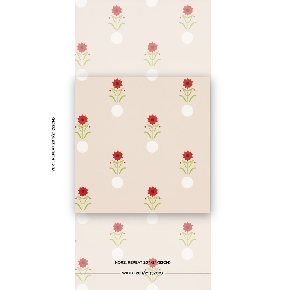 Peg Norriss - the brainchild of designer Barrie Benson and gallerist Chandra Johnson - works with leading contemporary artists to create showstopping wallpapers. Forget Me Dots derives its playful abstract pattern from moon motifs in paintings by artist Clare Rojas. With its unexpected combination of modern geometric forms and traditional floral elements, this unique medium-scale wallpaper makes a memorable statement, whether it accentuates a focal wall or wraps an entire room, and layers beautifully with Forget Me Nots fabric. -