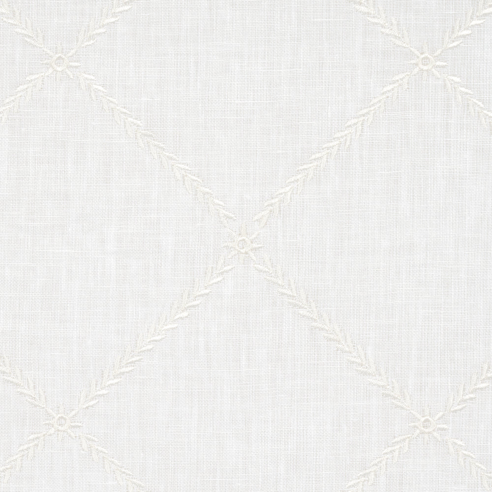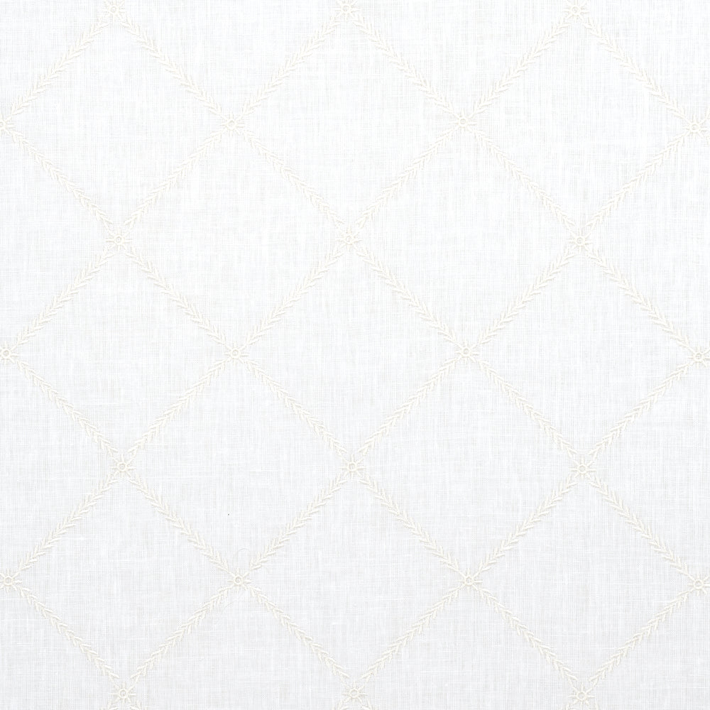 Gemma Sheer fabric features a delicate leafy lattice pattern embroidered on a gauzy linen ground. Sweet yet sophisticated, this mid-scale design works beautifully for soft Roman shades or breezy curtains. -