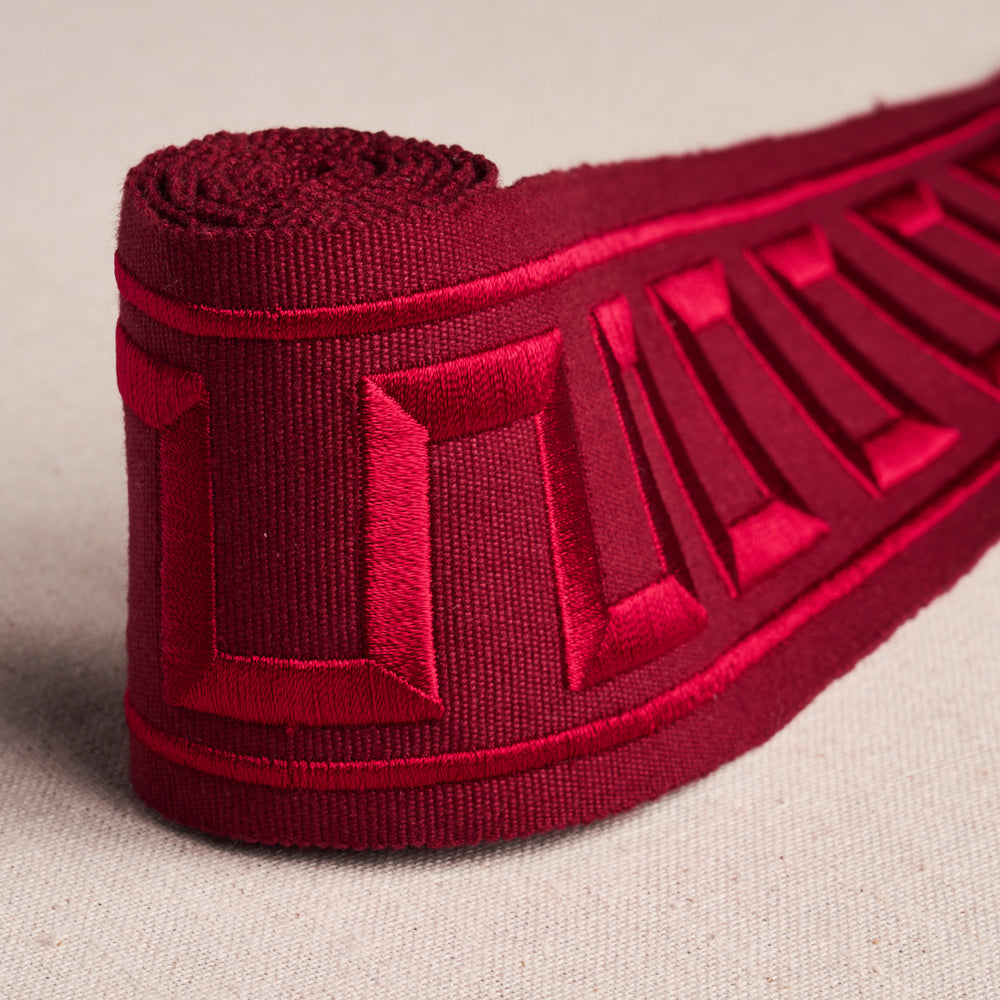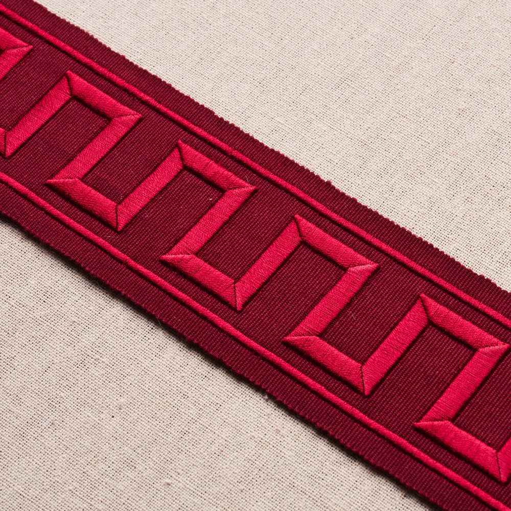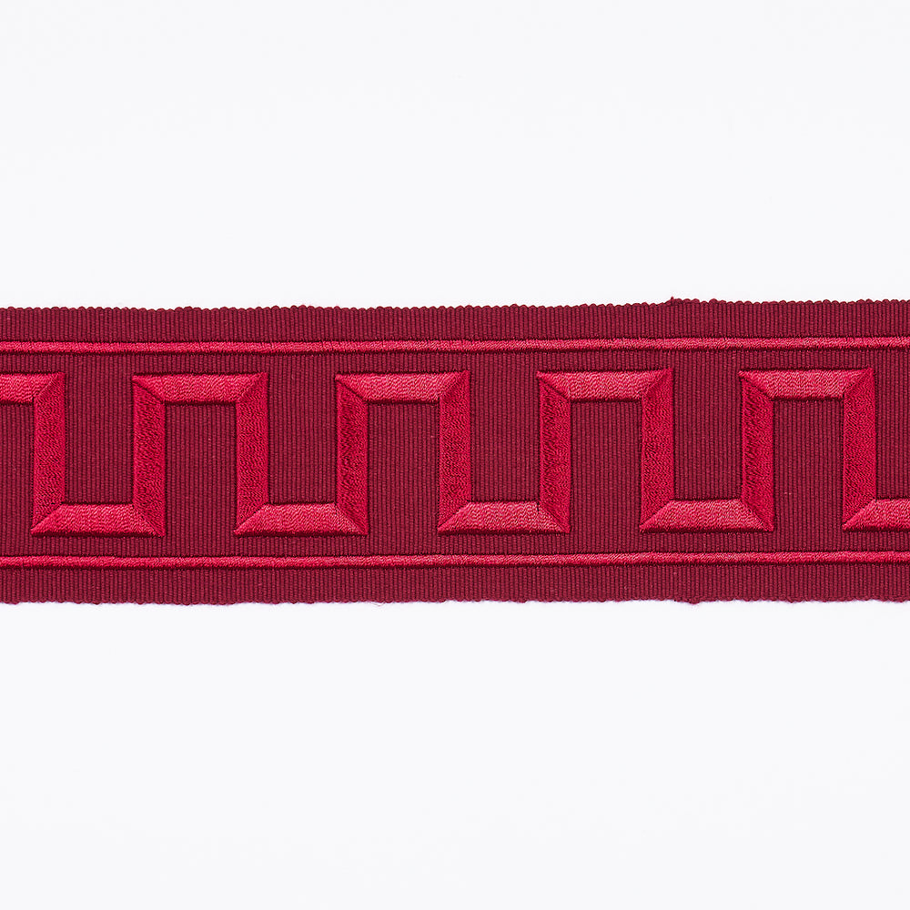 This quintessential Greek key motif designed by Miles Redd is pure perfection. No fancy fretwork in this embroidered red trim, just clean lines in a range of seductive colorways.