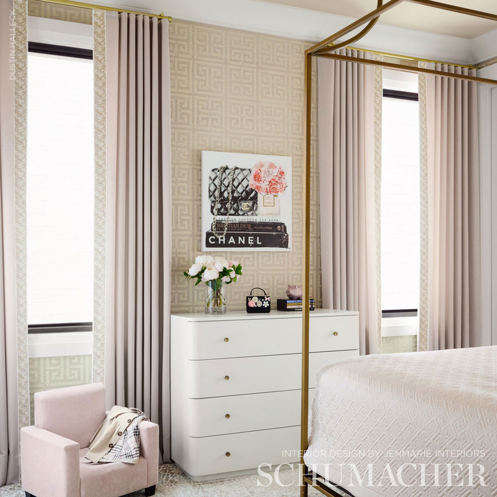A classic Greek key pattern is hand-printed on a natural sisal ground for a stylishly dramatic statement. -