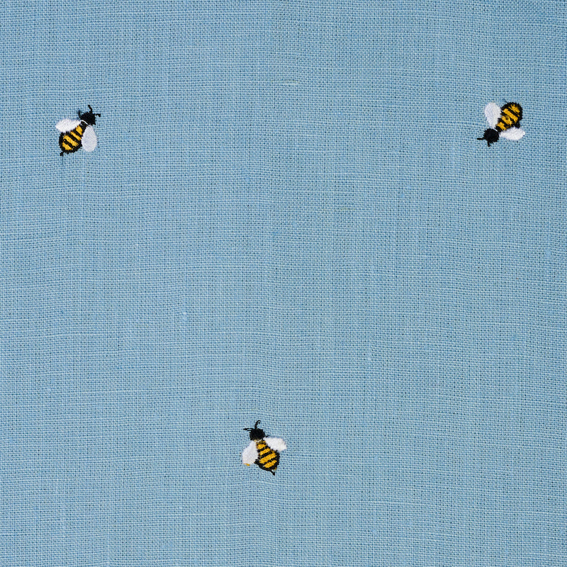 Buzzing with style, this sweet, non-directional design features diminutive honey bees delicately embroidered on a linen ground. -