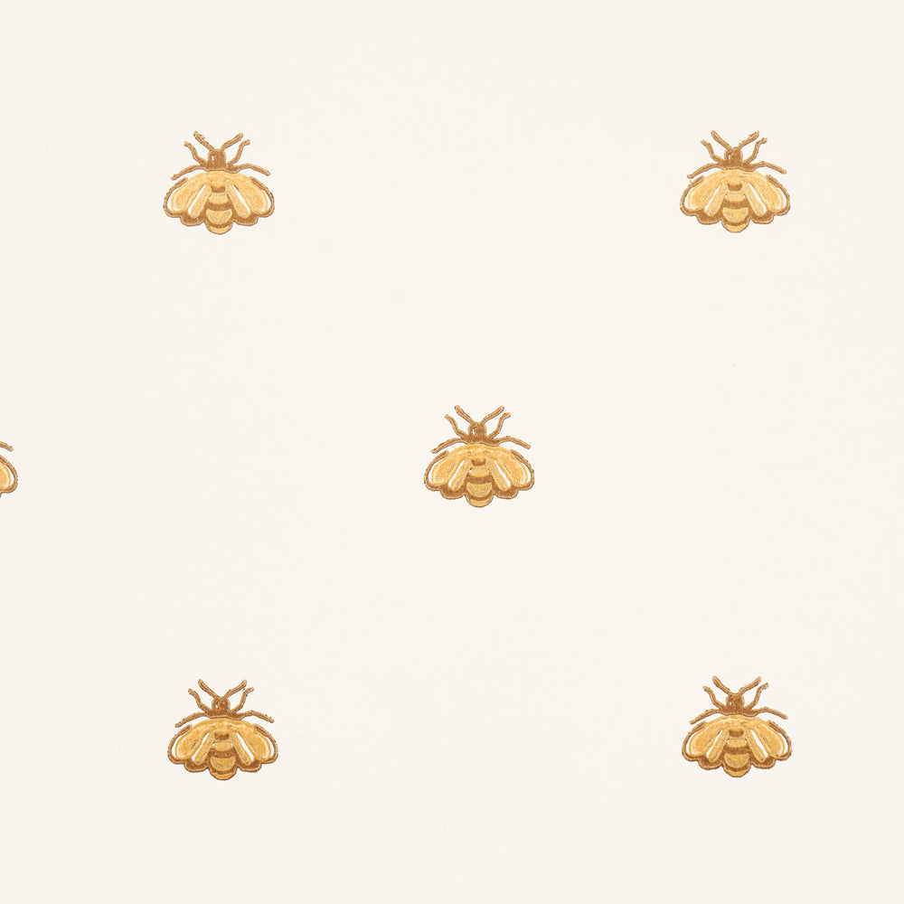 Inspired by a Napoleonic symbol, Hubert’s Bees is a chic and charming wallpaper design that adds a touch of Francophile style to any room. Surface printed with gold metallic ink, this small-scale pattern has marvelous dimension and a soft sheen—perfect for lining bookshelves, a closet or ceiling. For a coordinating trim, see Hubert’s Bees Tape. -