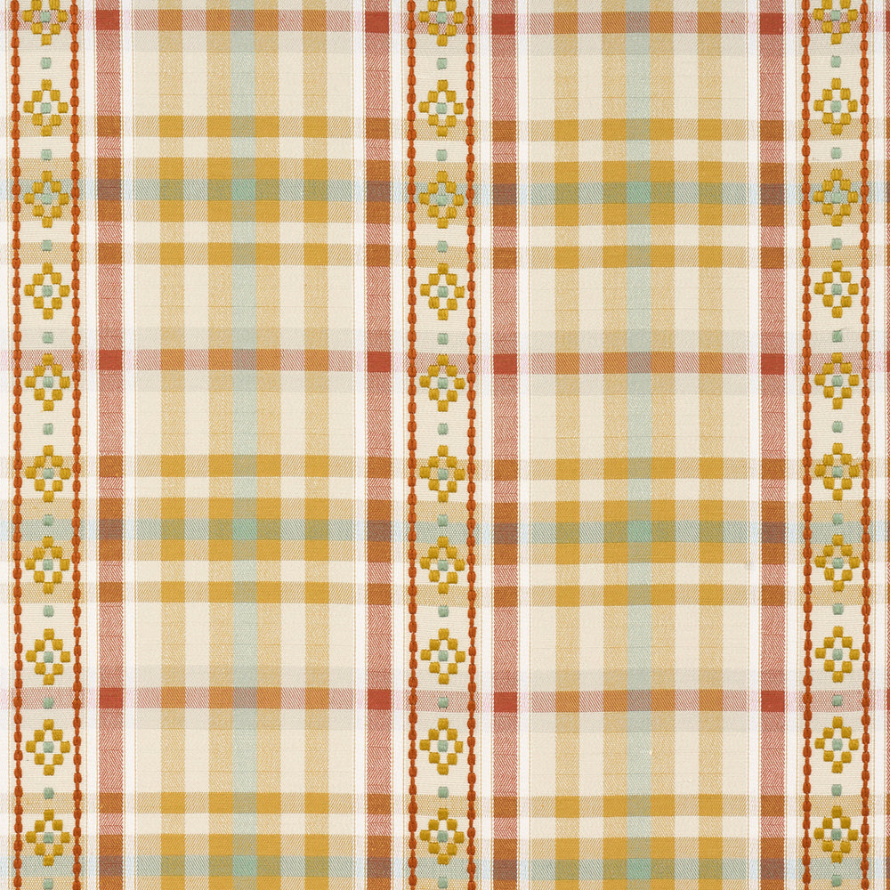 Handwoven of hand-dyed cotton and jute yarns, Hutton Check is a sturdy large-scale multicolor plaid with embroidered details. This substantial textural fabric lends wonderful dimension to upholstered pieces. -
