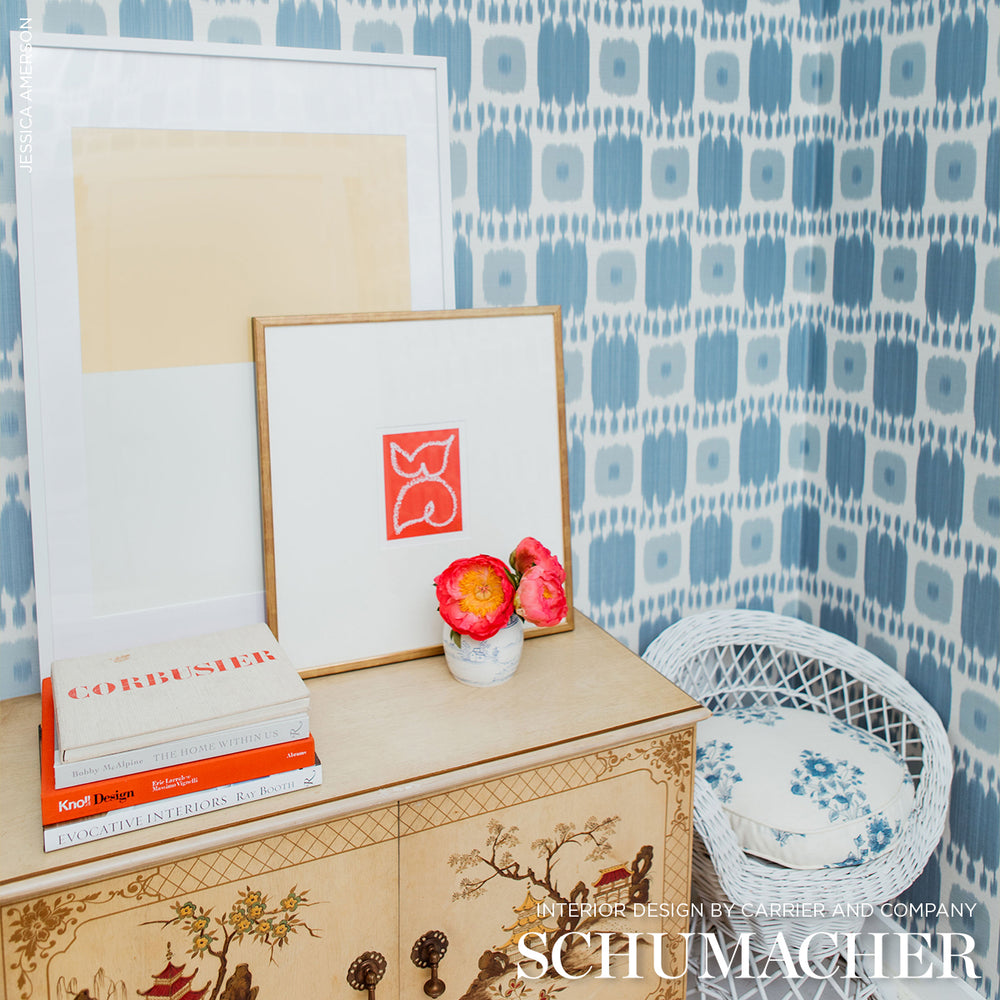 A painterly checkerboard design on a textural ground, Kandira is a versatile, graphic pattern derived from woven ikats. Also available as a fabric. -
