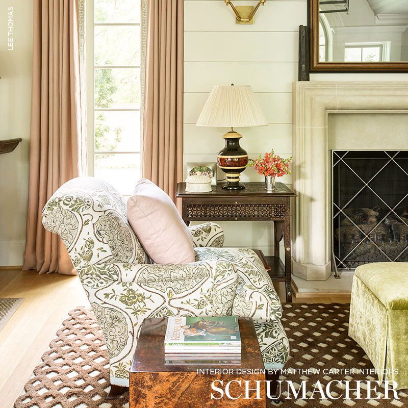 A Schumacher signature pattern, the painterly design is a whimsical nod to Japanese aesthetic and makes a unique statement. Also available as a wallcovering.