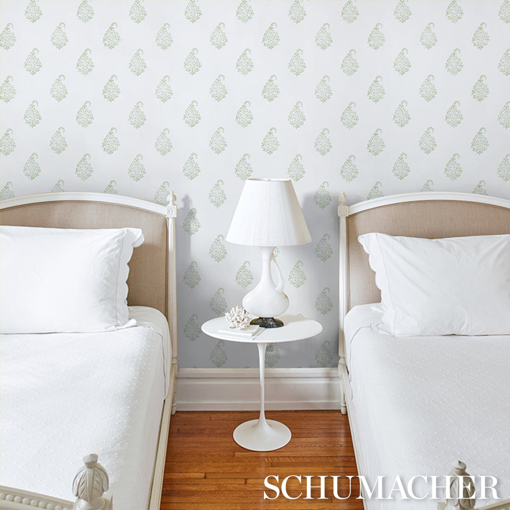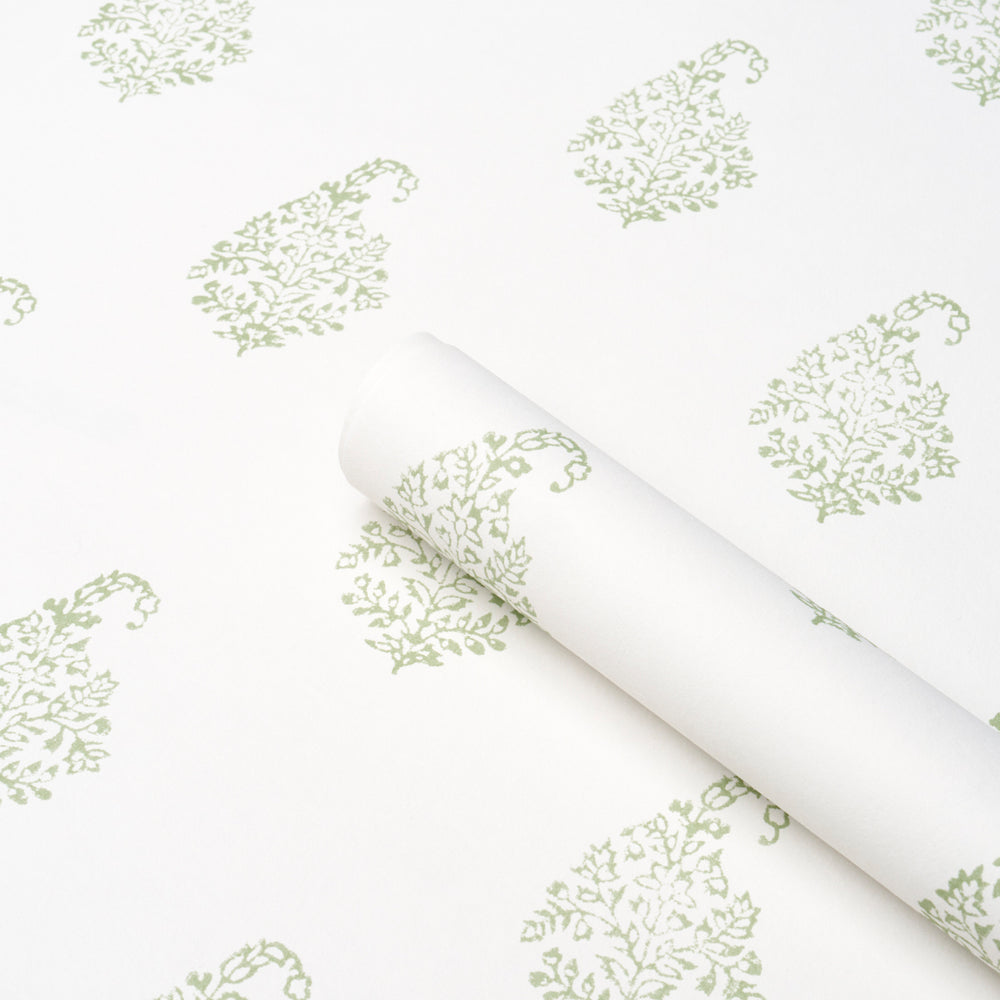 With its classic tear-shaped paisleys arranged in a repeating half-drop pattern, this wallpaper has the nuance and character of a traditional handblock print. Each paisley is composed of floral elements and lace like detail, creating a versatile small-scale design that layers beautifully with others. Also available as a fabric.