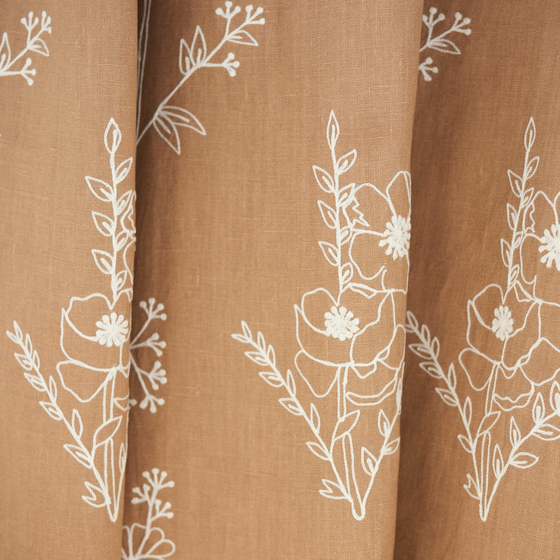 Rendered in simple chain stitching, this wonderfully naive botanical pattern has the delicate quality of a hand-drawn sketch.