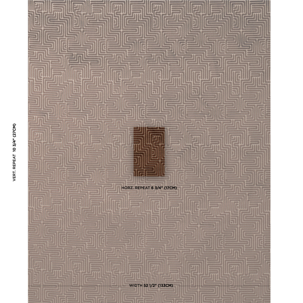 This unique, labyrinthine pattern was inspired by Portuguese tilework. Its winding, linear motif has a striking, large scale and a subtle, metallic sheen. -