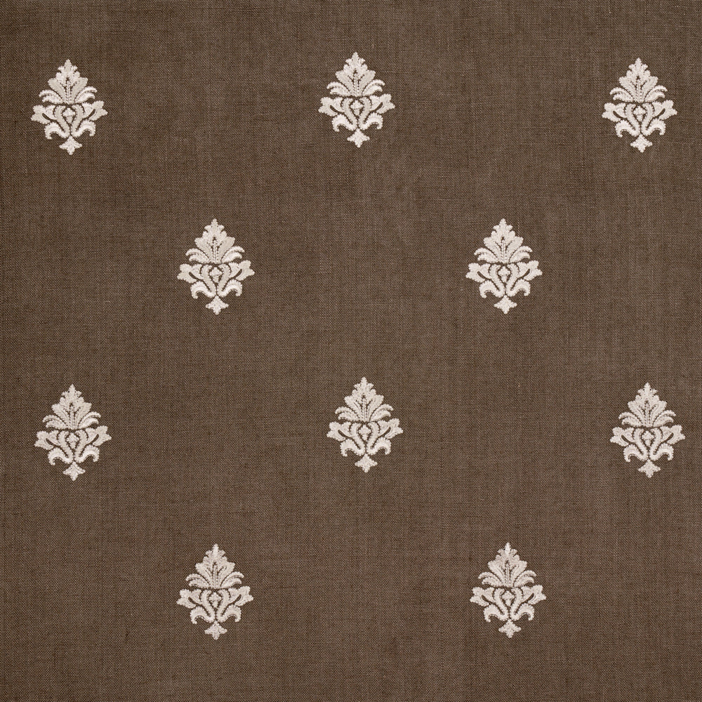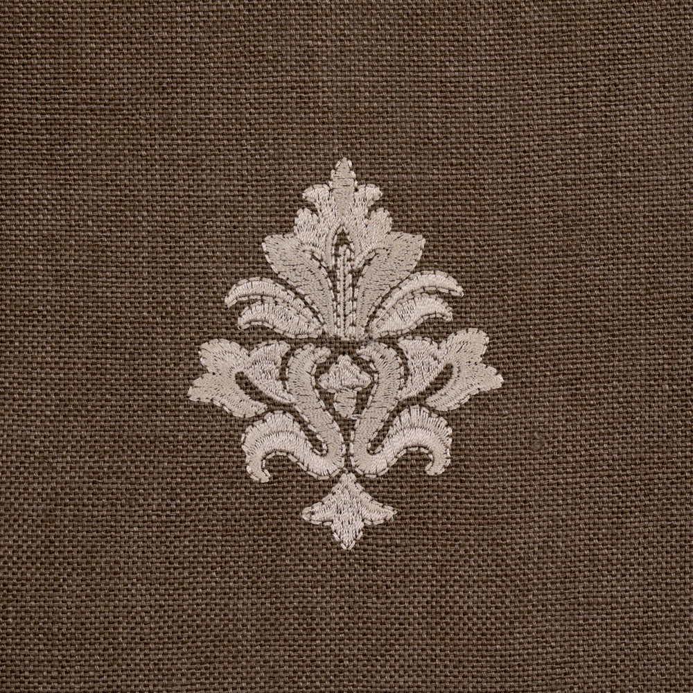 An open offset arrangement of leafy Italianate motifs satin-stitched on a soft linen ground, Lorenzo Embroidery is a beautiful small-scale pattern that lends itself to many uses. Classic and sophisticated, this fabric is perfect for upholstery, pillows or window treatments. -