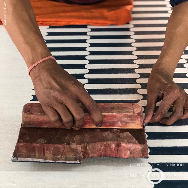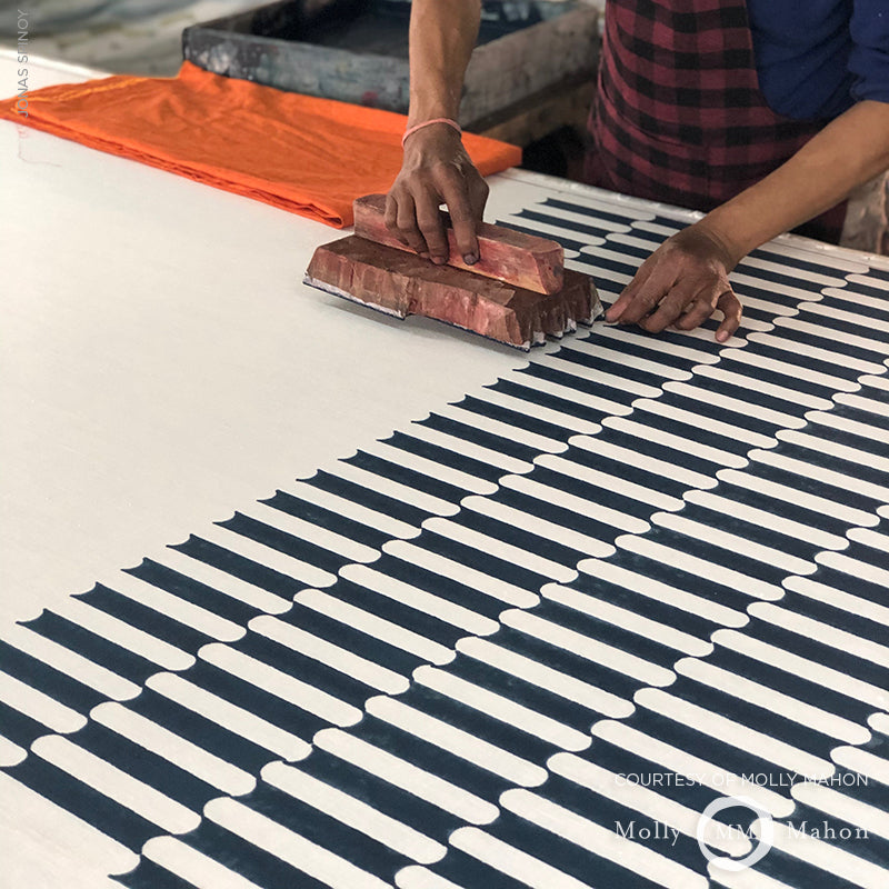 A CAPTIVATING AND PLAYFUL, GO-WITH-ANYTHING GRAPHIC PATTERN. HAND-BLOCK PRINTED IN INDIA BY MASTER CRAFTSMEN. -