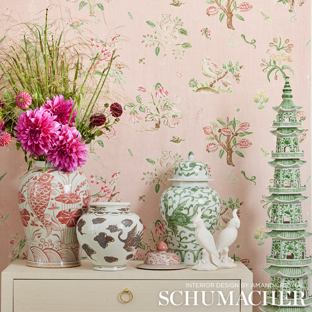 You can’t help but be charmed by blush-colored Magical Menagerie, a painterly study of flora and fauna based on an early 20th-century document in our archives. Part of the Flight of Fancy collection, it’s an infinitely enchanting pattern that is printed on linen to give upholstery, windows or pillows extra character. Also available as a wallpaper. This pattern is exclusively available on fschumacher.com. -