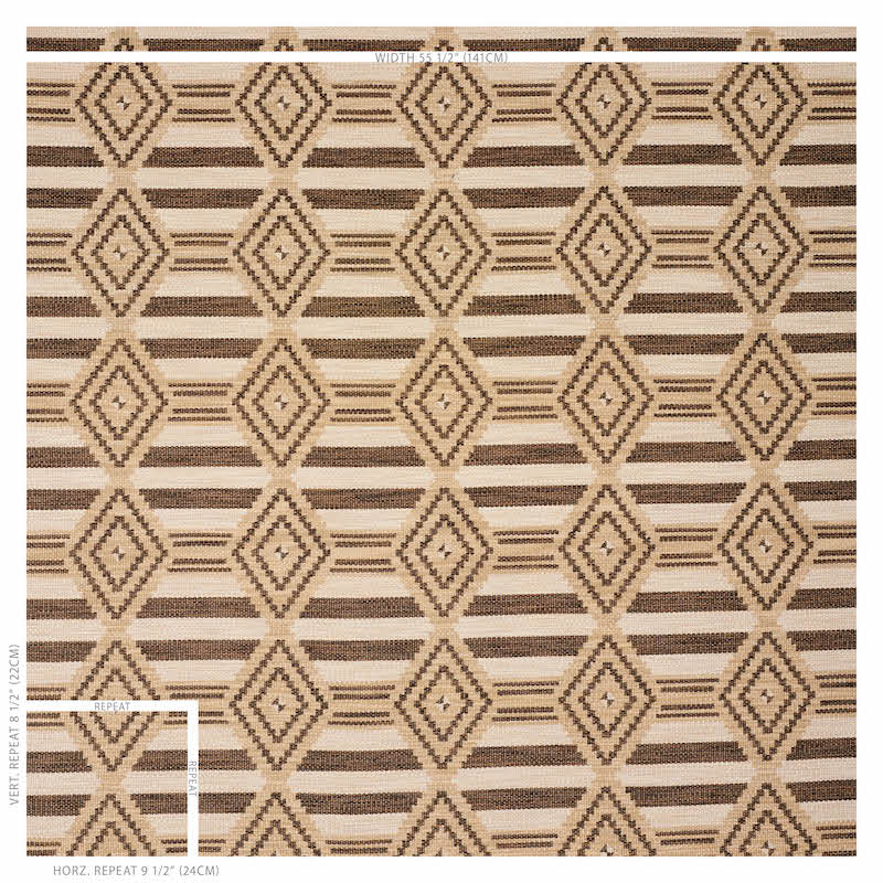 A layered geometric inspired by indigenous motifs, this high performance woven has a vintage look and the satisfying weight of a rug. Stain-resistant, it’s perfect for upholstery.