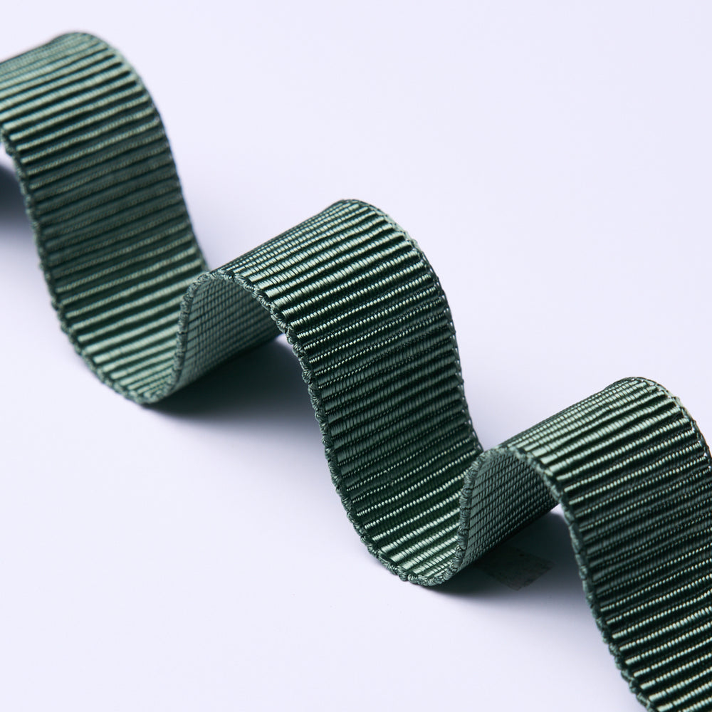 A medium-width grosgrain tape with a beautiful hand and subtle tonal variations, this is a versatile choice for an elegant finishing touch. Available in multiple colors and widths.