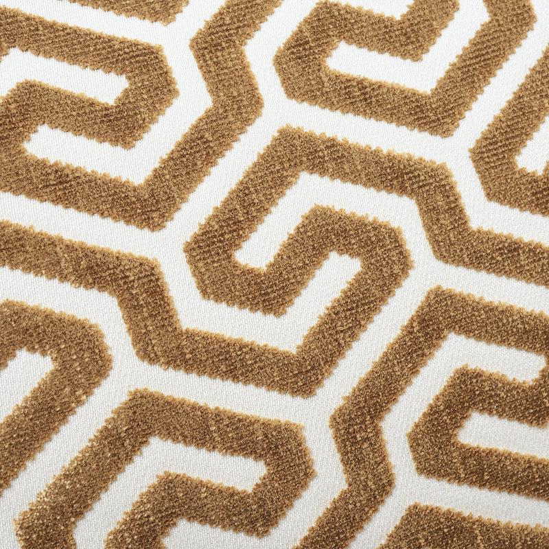 This pillow features Ming Fret. A velvet interpretation of our popular Ming Fret pattern, this striking design derives from a traditional Chinese motif. Chic and elegant, its raised, maze-like pattern contrasts against a flat, neutral ground. Pillow is finished with a welt in Gustave Silk Lip Cord Narrow. Cord contents: 60% Cotton, 25% Silk, 14% Polyester, 1% Nylon. Pillow includes a feather/down fill insert and hidden zipper closure. -