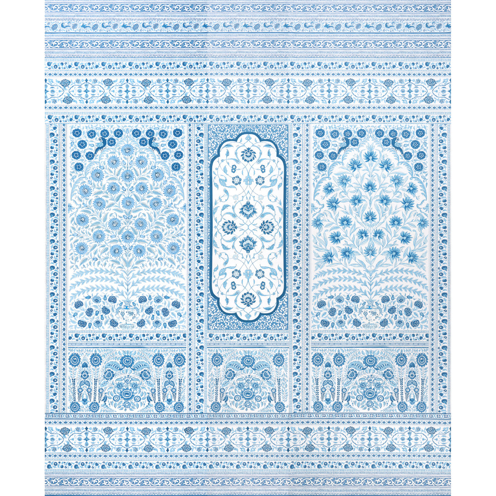 Montecito Panel Set is truly a masterpiece. Inspired by the paisley, floral and medallion designs Mark D. Sikes has created for us over the years, he devised this extraordinarily dense large-scale design to complement these beloved patterns. Based on original artwork that was hand-painted in our studio, this grand three-panel set was years in the making: a transporting tour de force of intricate detail and imaginative architectural elements, which can be cut and configured perfectly to a space for an enchanting effect. This panel set measures 135" wide with panel A at 54", panel B at 27", and Panel C at 54". The total legnth of this panel meaures 168". -