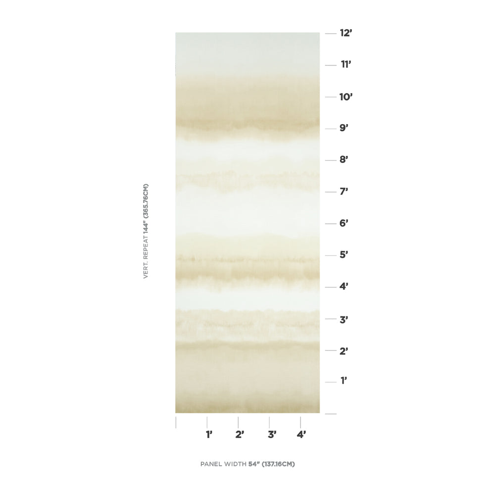 Capturing the look of artisanal processes like ikat or shibori, this 12-foot tall panel wallcovering has a soft, watercolor effect and alludes to a lush seascape or landscape. -