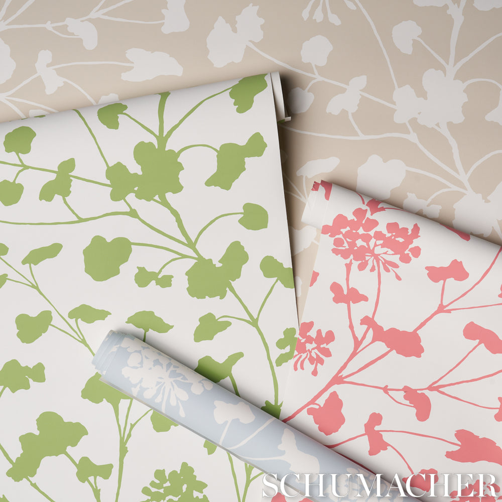 Pennick in sky is a painterly and sunny floral wallcovering that tempers a lush sense of romance with a crisp edge, thanks to a sharp, silhouetted interpretation. Also available as a fabric. -