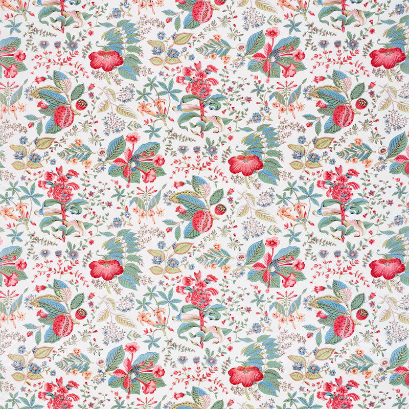 Based on an 18th-century design, this mid-scale botanical—an allover, multi-directional print on glazed cotton—has a lovely crisp hand and is perfect for just about anywhere. -
