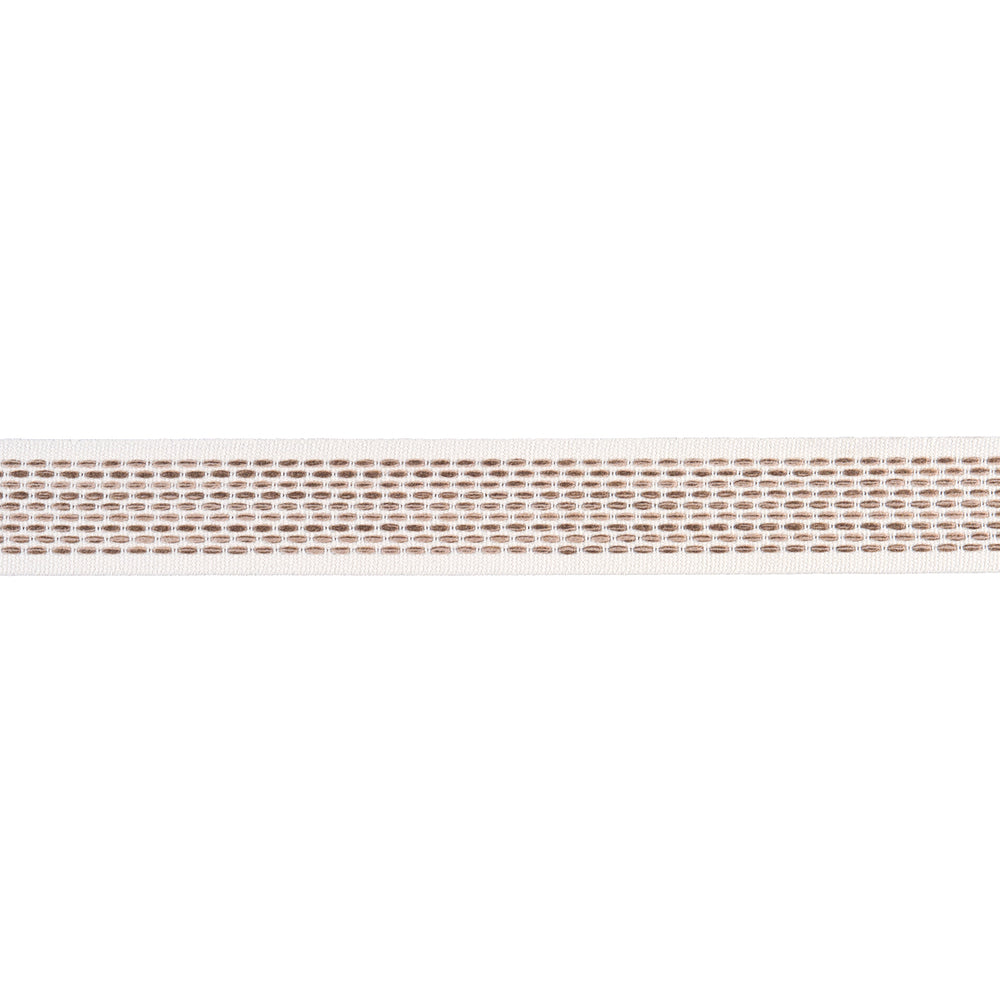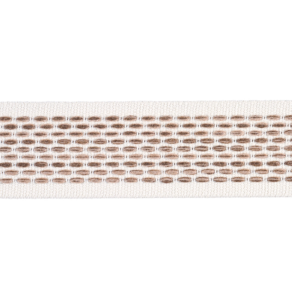 Stitches in variegated tones form a dappled stripe pattern on an understated high-performance tape with loads of tactile dimension.
