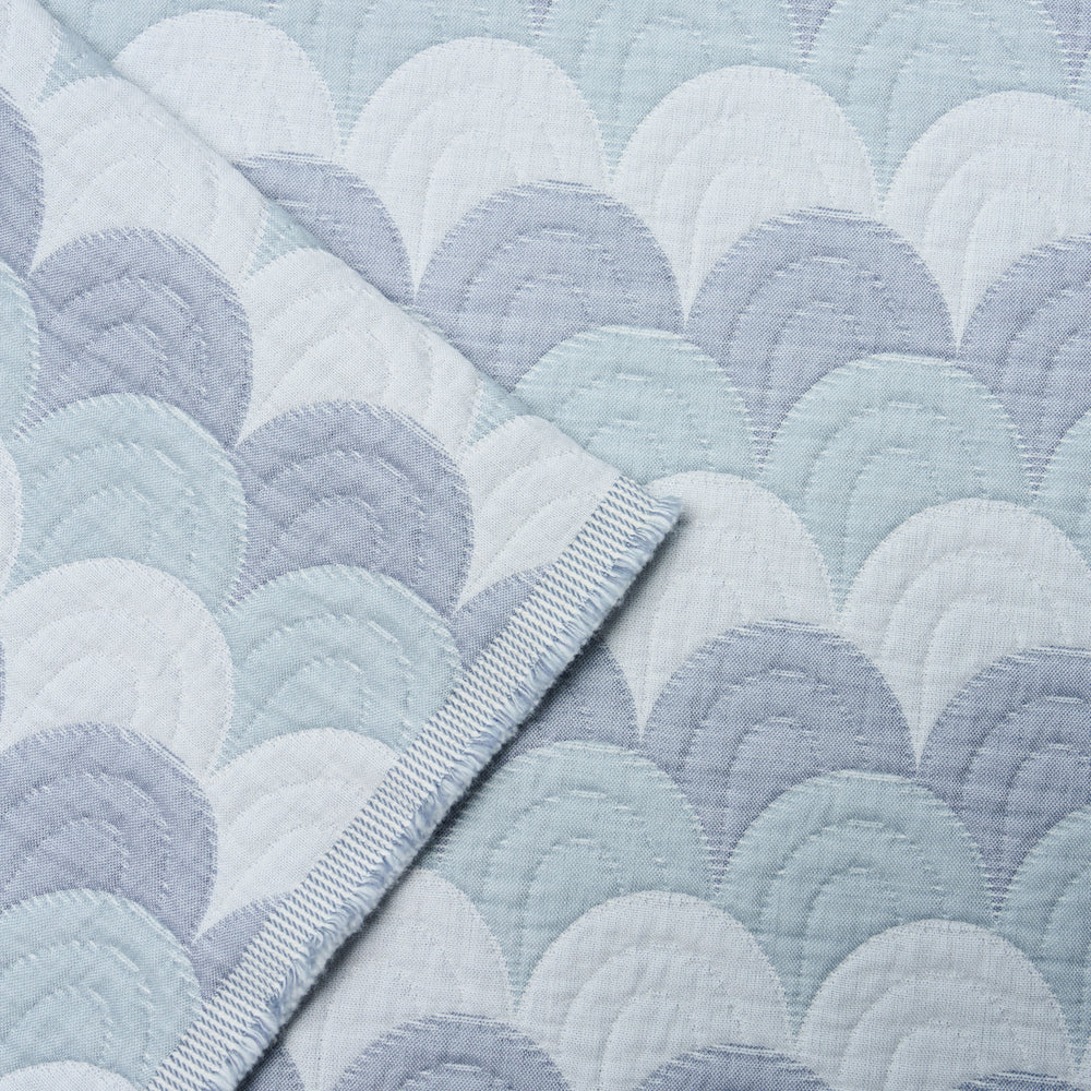 WITH ITS CLASSIC OFFSET SCALLOPS, TONAL STRIPE, AND QUILTED TEXTURE, PRAIRIE HILLS OFFERS A UNIQUE TACTILE DESIGN IN A SOFT 100% COTTON MATELASSÉ. THIS VERSATILE MEDIUM-SCALE FABRIC WORKS BEAUTIFULLY FOR HEADBOARDS, BEDDING, AND SLIPCOVERS.