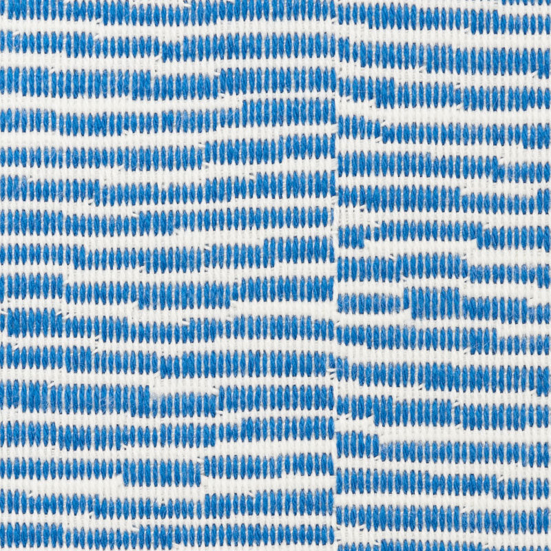 Promenade Indoor/Outdoor fabric in marine features irregular stepped bands and walks the line between an allover texture and a stripe. It’s a sturdy essential you’ll be coming back to again and again. -