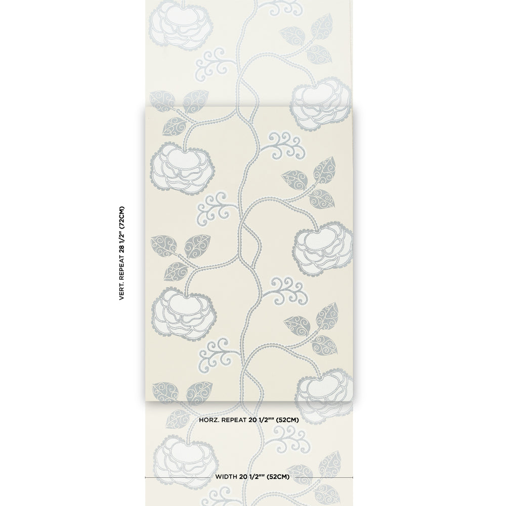 Neisha Crosland looked to far-ranging influences—luscious tropical mangosteens, the elaborate gold-outlined flora on a 16th-century English needlework bed hanging—for this opulent wallcovering, with its stylized, textural blossoms and curlicued leaves climbing upward like a luxuriant tree of life. Also a fabric. -