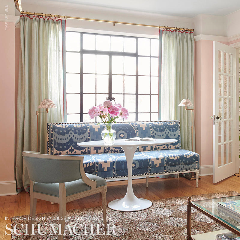 A true warp print produced with traditional ikat methods, Samarkand Ikat II is a signature Schumacher design that is beloved for its bold scale and pattern. -