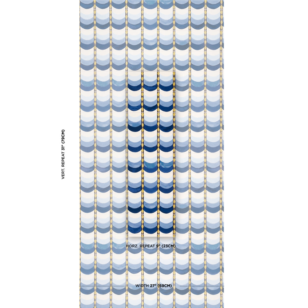 Celerie Kemble was inspired by Portuguese tilework when she created Sintra. An inventive medium-scale, trompe-l’œil design, this stylish wallpaper has the look of tile swags with an appealing ombré stripe effect and subtle sheen. -