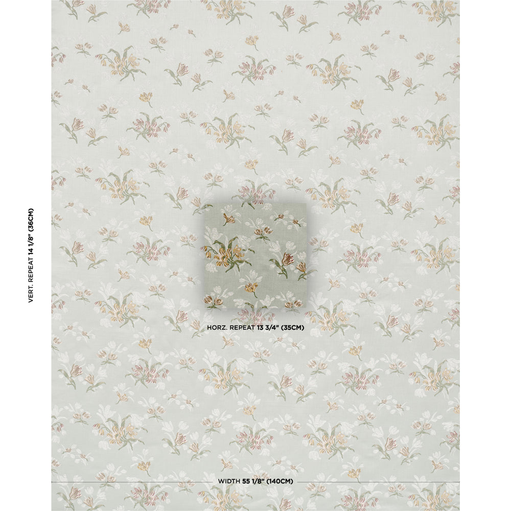 Inspired by a sumptuous silk brocade gown in the Colonial Williamsburg Foundation archive, Spitalfields Bouquet is an elegant floral fabric that is classic, timeless, and beautifully crafted. Made of 100% cotton, this complex lampas weave has fil coupé details and a delicate sheen that make this luxurious three-dimensional design perfect for light upholstery. -