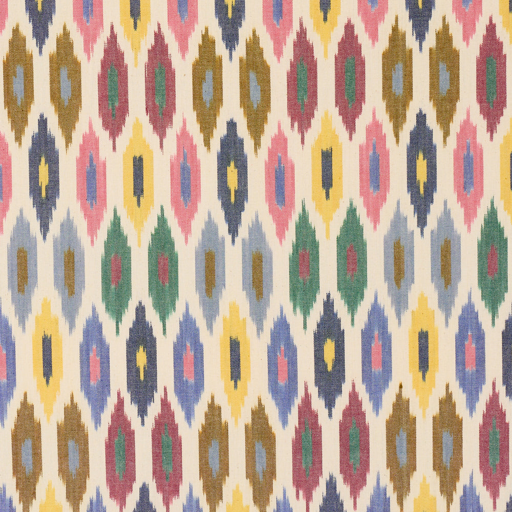 A true warp-printed ikat woven in India, this small-scale pattern offers the perfect splash of color. Subtle variations are intentional and part of its inherent natural beauty. -