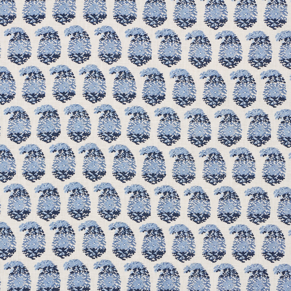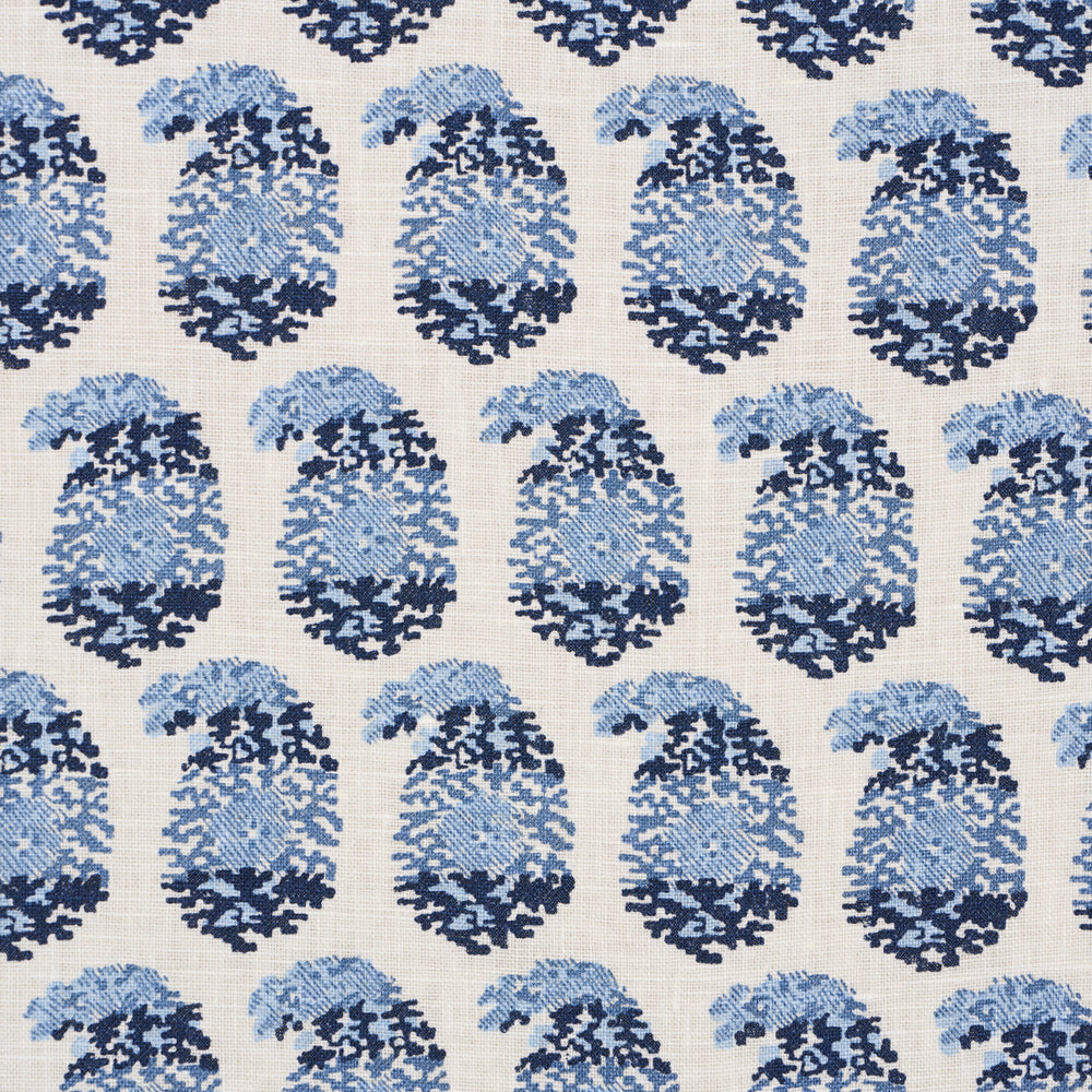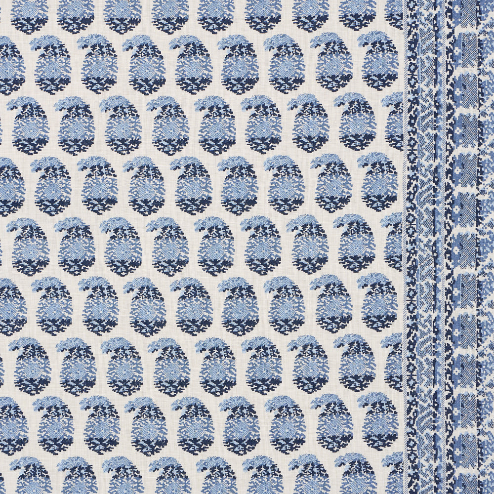 Created in collaboration with Rita Konig, Terry derives its rich colors, delicate paisley motif, and intricate border element from an antique document. Printed on a soft 100% linen ground with painstaking attention to detail, this versatile medium-scale fabric design plays well with others—especially florals—and can be used in myriad ways, from cozy accent pillows to wall upholstery. The border measures 3.9 inches wide. -
