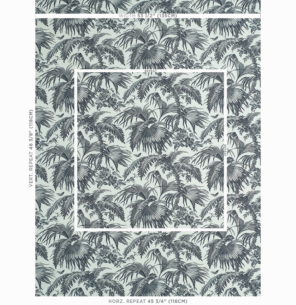 A nod to the illustrations of early-1800s botanical etchers—the artists-in-residence on seagoing voyages who sketched newly-discovered tropical flora in exquisite detail—this toile’s elegant profusion of fine-lined palms complements maximalist settings. A -