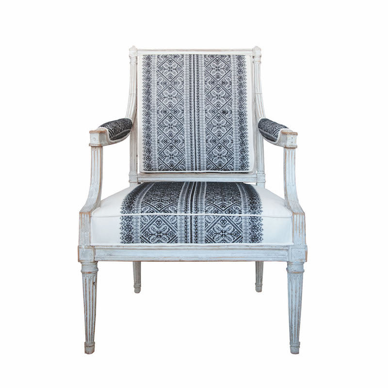 A gorgeously boho fabric in a beguiling, fresh mix of hues. The relaxed cotton-linen ground plays beautifully against the intensely detailed yet delicate embroidered bands. -