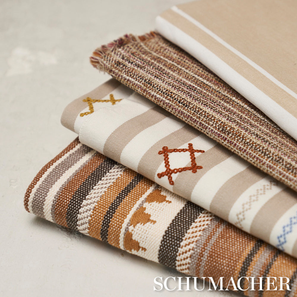 With a textural, handspun quality, this multicolor stripe makes a versatile coordinate that can pull a whole room together. -